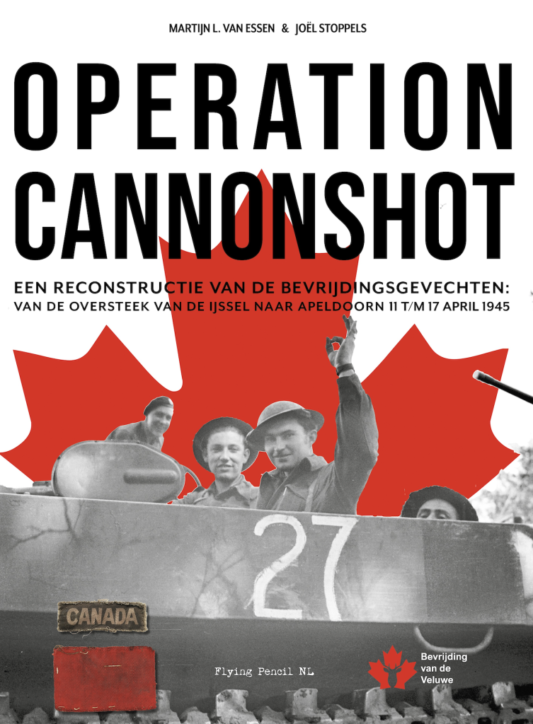 Het boek Operation Cannonshot. Een reconstructie van de bevrijdingsgevechten: van oversteek van de IJssel naar Apeldoorn 11 t/m 17 april 1945 geschreven door Martijn L. van Essen & Joël Stoppels is een luxueuze uitgave in kleur, voorzien van een harde kaft, stofwikkel en leeslintje. Het boek meet 210 x 297 mm(A4-formaat), telt 216 pagina’s en is voorzien van ruim 300 afbeeldingen en kaarten waarvan een deel nog niet eerder is gepubliceerd.