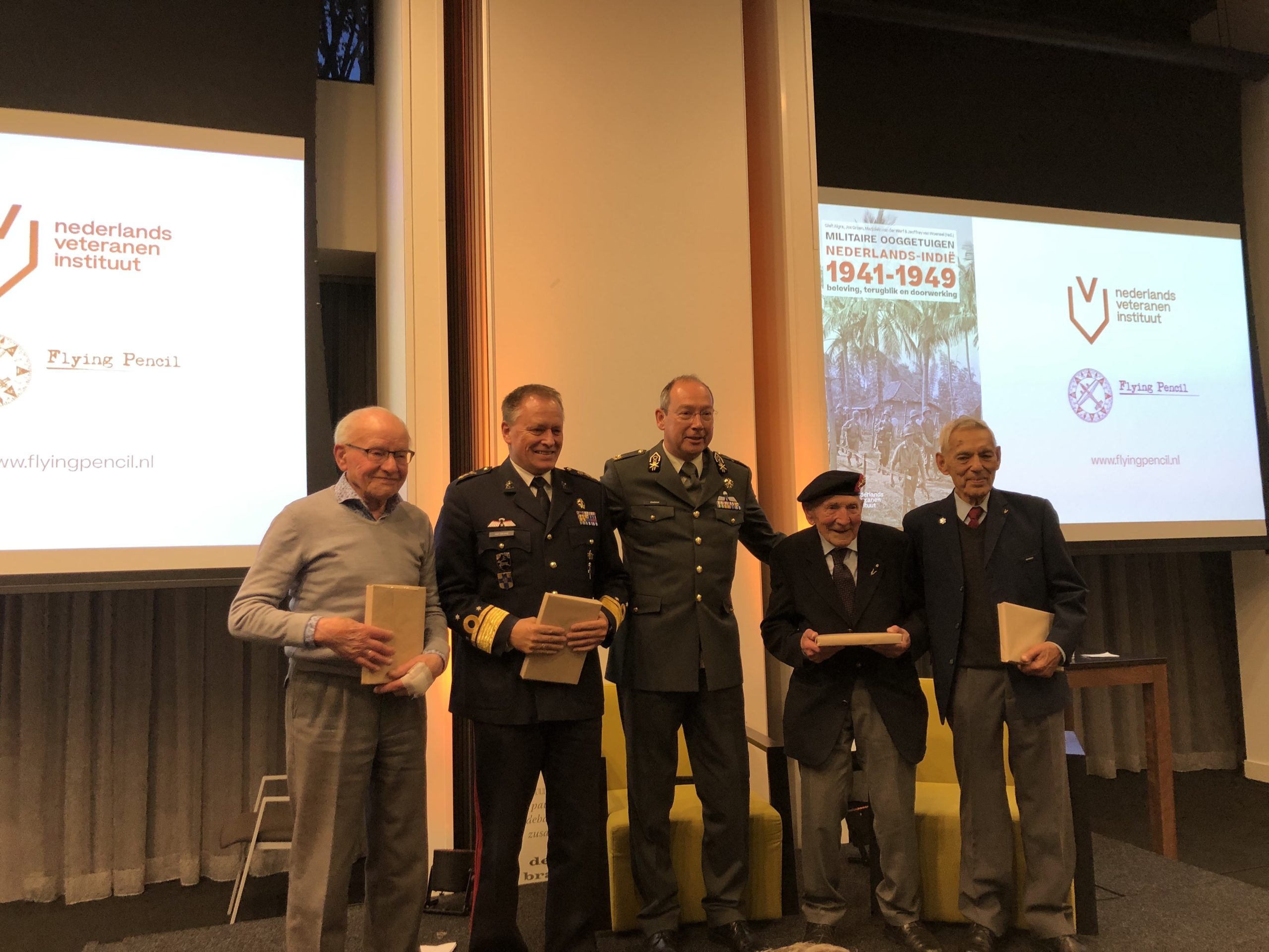 Drie Indië-veteranen kregen de eerste exemplaren van het boek uitgereikt. (copyright foto: Flying Pencil NL B.V.)