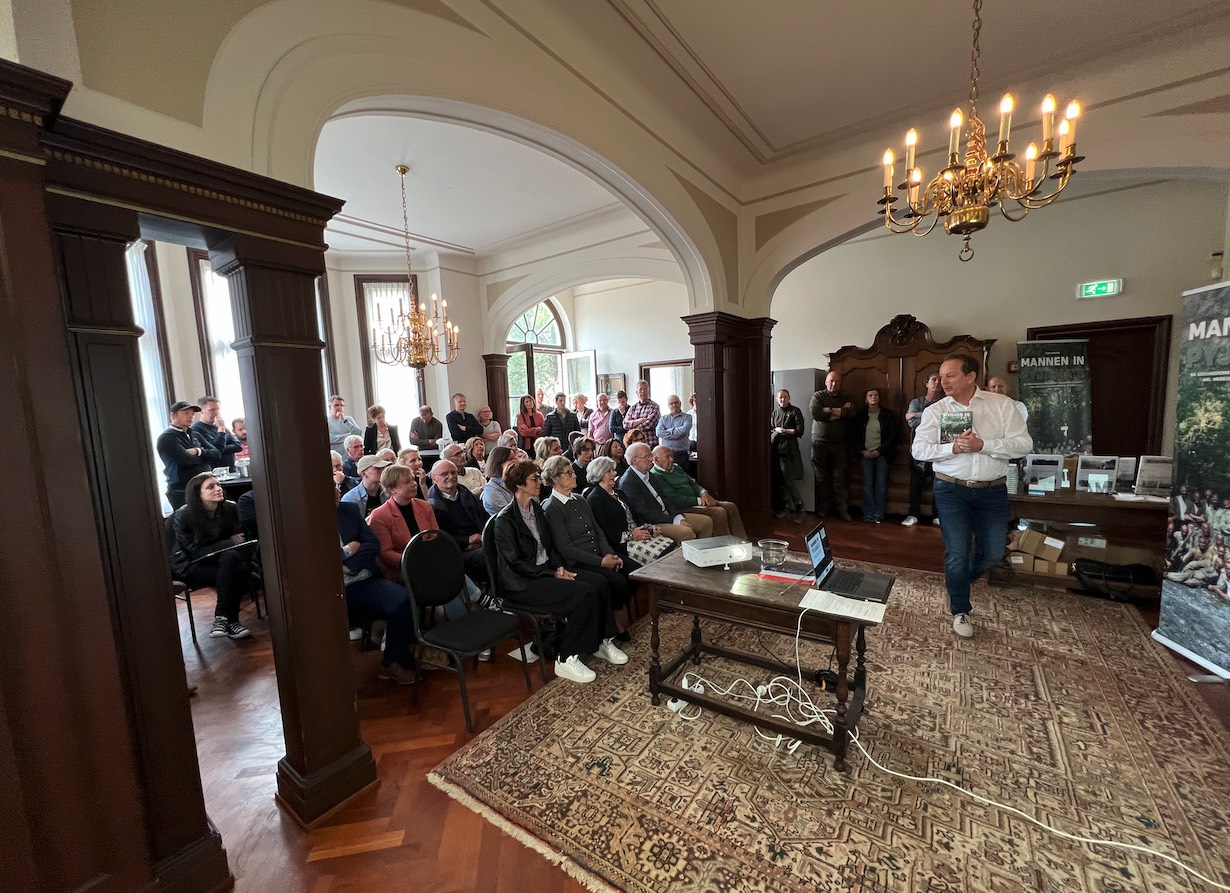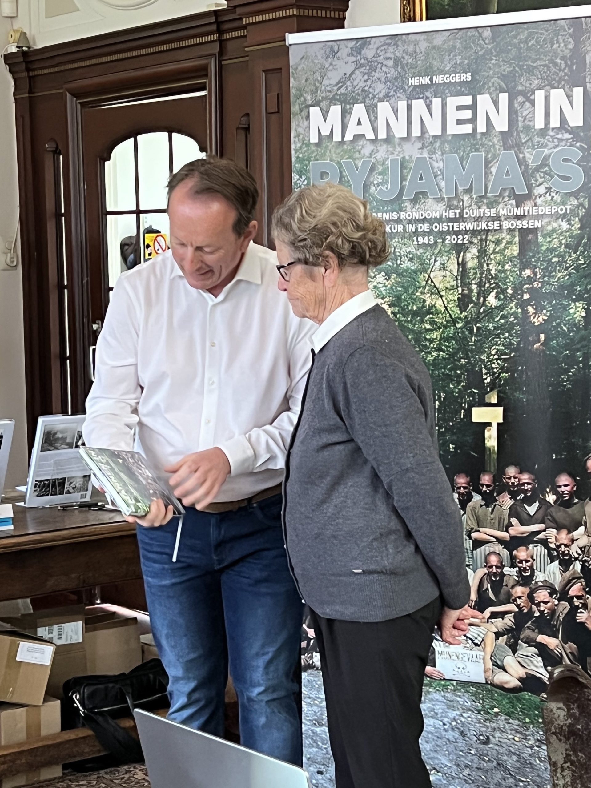 Op vrijdag 29 april 2022 is in Villa Hondsberg het boek ‘Mannen in Pyjama’s. De geschiedenis rondom het Duitse munitiedepot AML Merkur in de Oisterwijkse bossen 1943-2022’ van auteur Henk Neggers gepresenteerd. In deze villa was destijds de ‘Munitions-Verwaltigung’ van AML Merkur gevestigd. Aan de hand van een uitgebreide presentatie nam auteur Henk Neggers een zestigtal belangstellenden mee en liet de oorlogsgeschiedenis van de Oisterwijkse bossen de revue passeren. Ook de achtergrond van de fascinatie van de auteur voor de oorlogsgeschiedenis van de Oisterwijkse bossen en hoe zijn moeder deze fascinatie had aangewakkerd kwamen aan bod. Aan het einde van de presentatie vroeg de auteur zijn moeder naar voren om het eerste exemplaar van het boek in ontvangst te nemen. Daarna was er ruimte voor de aanwezigen om een eigen exemplaar van het boek aan te schaffen en te laten signeren door de auteur. De dag werd afgesloten met een hapje en drankje. Het was een zeer geslaagde lancering van het boek in een schitterende en historische omgeving.