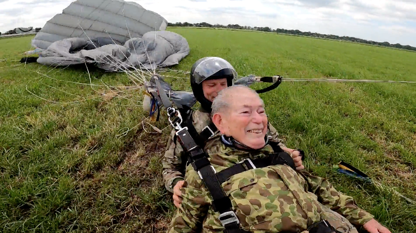 Op zijn 98ste verjaardag kreeg dhr. Middel, oud-Topi Merah, naast een heerlijke taart ook een tandemsprong cadeau aangeboden door het Korps Commandotroepen (KCT). Woensdag 24 mei 2023 was het dan zover. Onder het toeziend oog van vier cameraploegen en andere pers op vliegveld Breda trok dhr. Middel een camouflage-overall (van de Topi Merah) aan, werd in het harnas gehesen en kreeg uitgebreid instructies van zijn tandemmaster. Na enkele interviews te hebben gegeven voor het vliegtuig, nam dhr. Middel plaats in het toestel. Op circa 10.000 voet sprong dhr. Middel met zijn tandemmaster. De actie werd door enkele commando’s die meesprongen in de lucht gefilmd. Ook op de grond werd de sprong nauwlettend gevolgd door de familie Middel waaronder zijn kleinzoon, personeel van het KCT, media en andere geïnteresseerden. Na een goede en zachte landing stond dhr. Middel weer snel op om familie en de verzamelde pers direct te woord te staan. Hij vertelde over zijn ‘sensationele’ ervaring en op de vraag of hij nog een keer wilde springen, antwoordde hij volmondig ‘ja’!