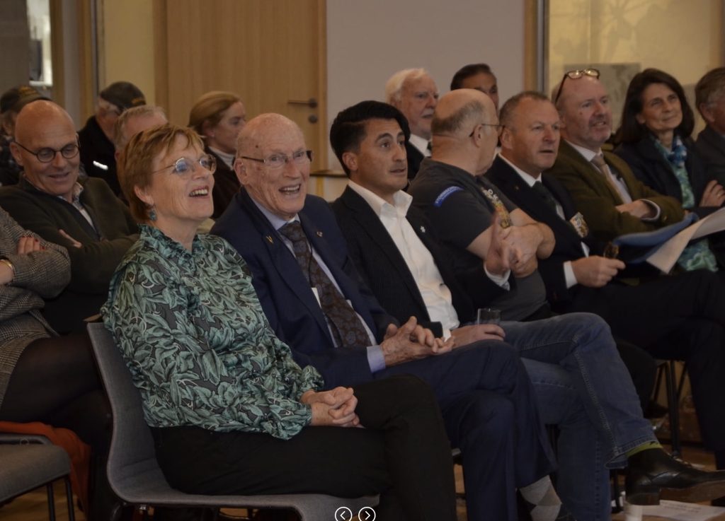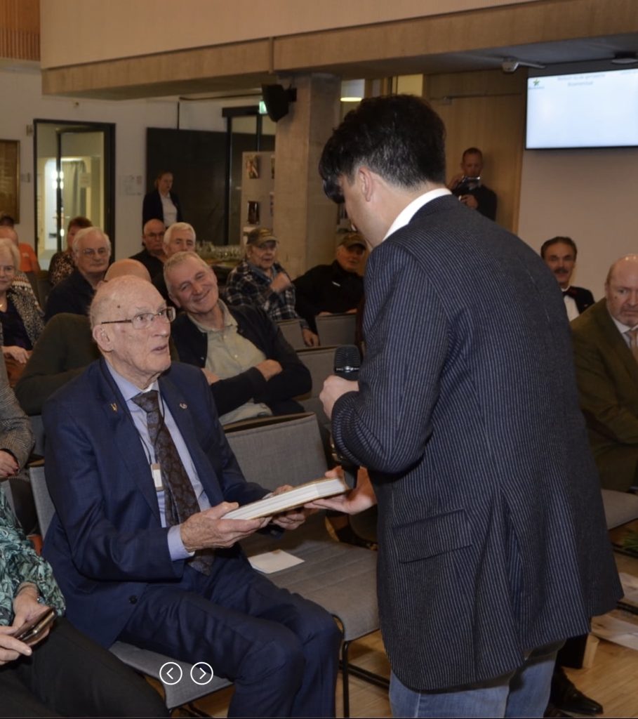 Op donderdag 23 november 2023 is in de prachtige zaal van het gemeentehuis van Bloemendaal te Overveen het boek ‘Het Kennemerbataljon. De Geschiedenis van 2-4 R.I. en de inzet in Nederlands-Indië 1945-1948’ van auteur Thierry van den Berg onder veel belangstelling gepresenteerd. Na de interessante lezingen en presentaties werden de eerste exemplaren van het boek door van den Berg uitgereikt aan dhr. J. Heerema (100 jaar, veteraan van het Kennemerbataljon) en aan dhr. L. Middel (99 jaar, veteraan van de Paracommando’s van het KNIL). Het was een mooie en gedenkwaardige bijeenkomst, waarbij veel nabestaanden van Kennemerbataljon-veteranen en ook een aantal reenactors (van de Binnenlandse Strijdkrachten en het Kennemerbataljon) aanwezig waren. Na het officiële gedeelte was er nog even tijd om bij te praten onder het genot van heerlijke (Indische) hapjes en drankjes. Deze goed georganiseerde bijeenkomst was mede mogelijk gemaakt door George ten Hoope, Sander Jongbloedt, Steven van Wiligenburg, gemeente Bloemendaal en nog vele anderen.