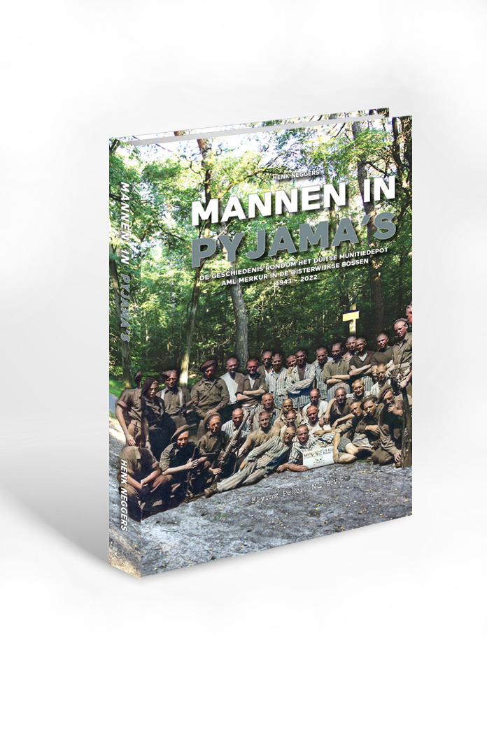 Het boek ‘Mannen in pyjama’s’ belicht een deel van de geschiedenis van de Oisterwijkse bossen en gaat in op de opslag van munitie in het militaire achterland. De inrichting en ontwikkelingen van AML Merkur in het roerige oorlogsjaar 1944 worden gedetailleerd beschreven, ondersteund door wandel- en spionagekaarten, belevenissen van getuigen en nooit eerder vertoonde ingekleurde foto’s van toen. Door gebruik van speciale hoogtebeelden zijn achtergebleven littekens in het landschap wederom zichtbaar geworden. Een prachtig vergelijk tussen het verleden en heden.